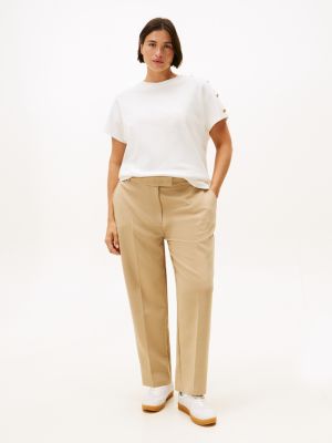 Add a luxurious touch to an everyday ensemble with this silk-finish T-shirt, detailed with embossed gold-tone buttons on the shoulder.