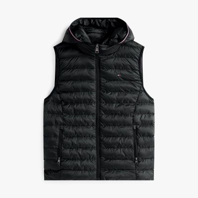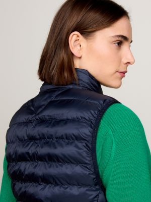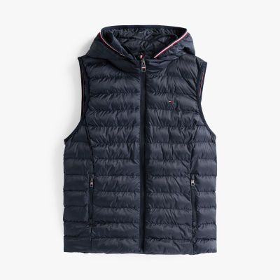 Insulated with lightweight down, this padded gilet provides an impressive warmth-to-weight ratio – the ideal outer layer for transitional weather or extra insulation under a jacket. The high neck adds both style and protection from the wind, while the full-length zip fastening allows for easy on-off wear and adjustable coverage to suit the temperature. Signature tape around the hood offers a distinctive Tommy Hilfiger touch, adding colour and branded energy to this staple. Finished with chest flag embroidery, the piece remains understated yet recognisably premium. Its quilted design works well with your ensembles, transitioning easily from urban outings to weekend escapes to the countryside.