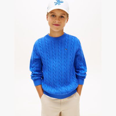 The cable-knit design adds a nautical vibe to this cosy pure combed cotton jumper, perfect for when days get a little chilly.