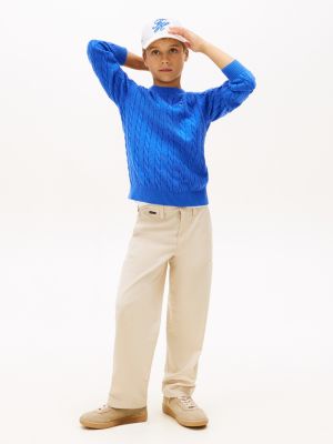 The cable-knit design adds a nautical vibe to this cosy pure combed cotton jumper, perfect for when days get a little chilly.