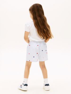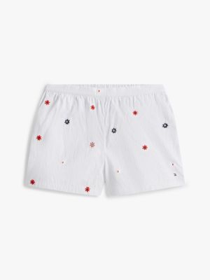 These fresh, pure cotton poplin shorts are embroidered all over with bright floral motifs, making them a charming choice for warm days.