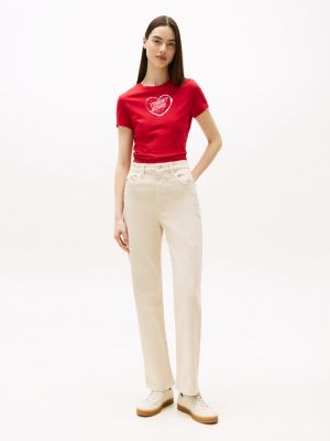 These high-rise, slim-fit jeans with flag detail are garment-dyed for a fresh look with a versatile vintage vibe.