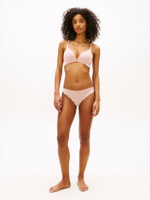 Wavy lace trims add femininity to this padded plunge bra that's made from stretch nylon microfibre with a smooth finish.