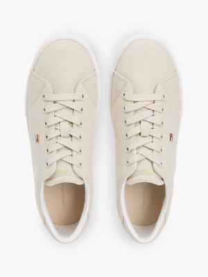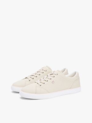 These low-profile pure cotton canvas trainers feature vulcanised rubber outsoles and a raised enamel flag, for sleek, hard-wearing signature style.