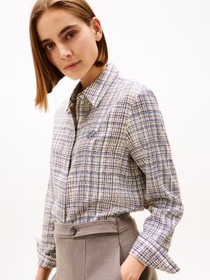 This linen twill shirt with a concealed placket features a modernised check design, for an eye-catching addition to your day-to-day looks.