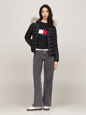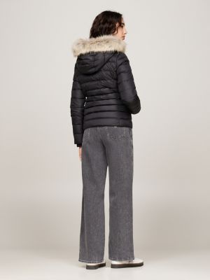 This down-filled puffer jacket is the perfect option for nights out, featuring a snug hood with a chic faux fur trim.
