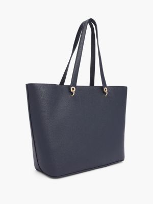 This elegant tote features a refined pebble grain texture and is complete with a TH monogram on the front.