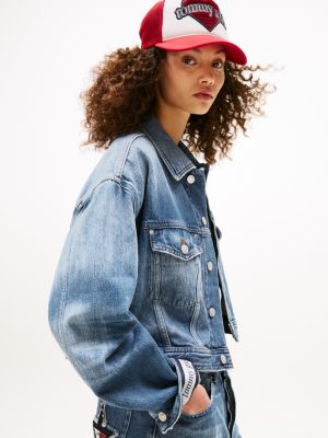 Tommy Girl Back Logo Cropped Oversized Denim Jacket