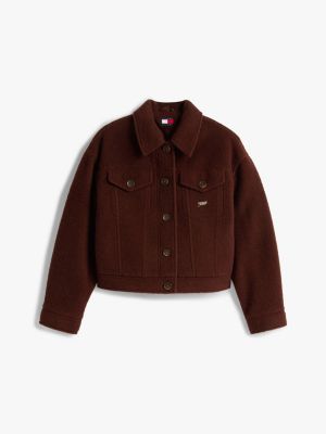 Bring effortless cool to outfits with this trucker jacket, crafted from a wool blend with a serif script logo plaque.