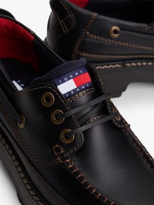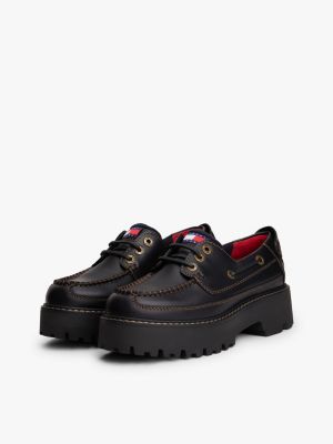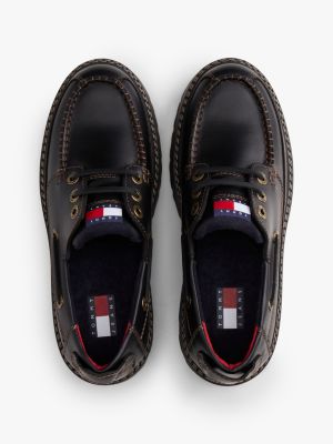 Eine rutschhemmende Laufsohle und übergroße Schlaufen zum Anziehen verleihen diesem klassischen Bootsschuh aus Leder aktuelle Vibes.