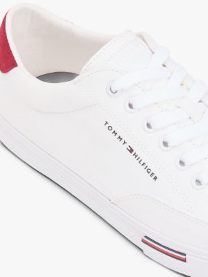 Dieser lässige Canvas-Sneaker aus reiner Baumwolle mit Branding an der vulkanisierten Laufsohle verleiht deinen Freizeitlooks aktuelle Tommy-Vibes.
