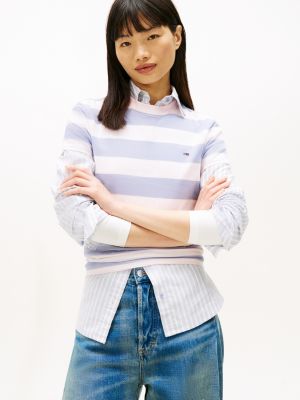 In der Tommy Hilfiger T-Shirt-Auswahl für Damen finden Sie immer etwas Passendes. Unsere Kollektion hochwertiger T-Shirts aus reiner Baumwolle und leichtem Jerseymix bietet Ihnen Komfort und kuschelweichen Luxus. Die angesagten Designs und Trendfarben unterstreichen den coolen College-Stil. Unsere langärmeligen Damen-T-Shirts sind vielseitig kombinierbar, beispielsweise mit Absatzstiefeln oder einem lässigen Paar Sneaker, und können Ihrem Outfit eine edle oder auch sportliche Note verleihen, damit Sie sich jederzeit Ihrer Stimmung entsprechend kleiden können. Sie suchen ein zeitloses T-Shirt in cleanem Weiß, das perfekt zur Jeans passt, oder ein College-Shirt, das Sie am besten zu einer Pyjama- oder Jogginghose kombinieren können? In der Auswahl von Tommy Hilfiger werden Sie fündig. Für einen entspannten Alltagslook entscheiden Sie sich für ein Oversized-Shirt und tragen eine elegante Damenhose und urbane Sneaker dazu. In einem unserer T-Shirts mit Print oder Slogan setzen Sie ein Fashion-Statement. Für einen dezenten Alltagslook setzen Sie hingegen am besten auf ein T-Shirt in klassischen Farben. Durchstöbern Sie die Kollektion und finden Sie Ihre Favoriten.