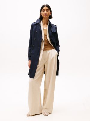 Kombinieren Sie einen klassischen schwarzen maßgeschneiderten Trenchcoat für Damen mit stilvollen, spitzen Pumps für einen Look, der jedes Mal den richtigen Eindruck hinterlässt. Wenn Ihnen der Pariser Chic gefällt, kombinieren Sie einen navyblauen Damen-Trenchcoat mit einer tintenblauen Skinny Jeans und einem lässigen Damen-Top. Für eine coole Eleganz ist ein klassischer beigefarbener Trenchcoat mit leicht gewaschenen blauen Denim-Jeans kombiniert mit einem weißen T-Shirt perfekt. Elegant und Zeitlos, als essentielles Kleidungsstück für den Lagen-Look in jeder Damen-Garderobe, greifen Sie noch jahrelang nach Ihrem Trenchcoat von Tommy Hilfiger, damit Sie jedem Ensemble etwas Besonderes verleihen können.