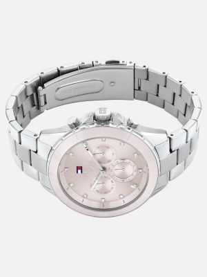 Edelstahl-Uhr mit rosafarbenem Zifferblatt