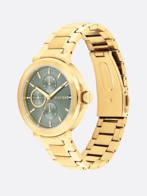 Bei dieser eleganten Uhr aus glänzendem Edelstahl sorgt das auffällige Gliederarmband für eine Premium-Note.