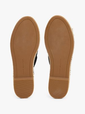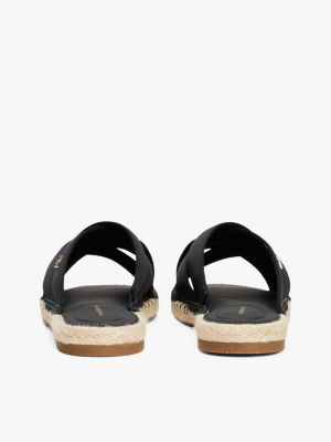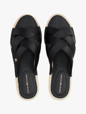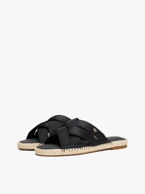 Glatte Satin-Riemen im Crossover-Design verleihen dieser traditionellen Espadrille-Pantolette zum Hineinschlüpfen einen edlen Look.