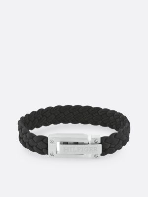 Integriere Surfer-Style in deine Outfits mit diesem geflochtenen Armband aus schwarzem Leder mit verstellbarem Verschluss.