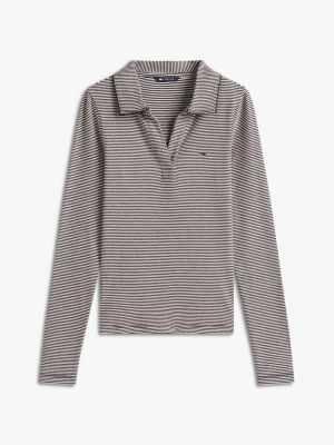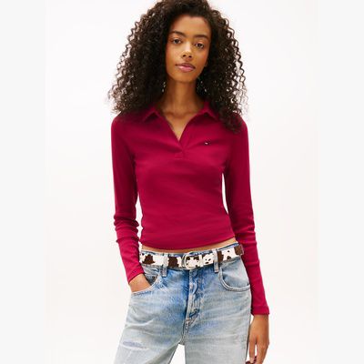 Dieses gerippte Langarm-Poloshirt sorgt dank Slim Fit für eine figurbetonte Silhouette.