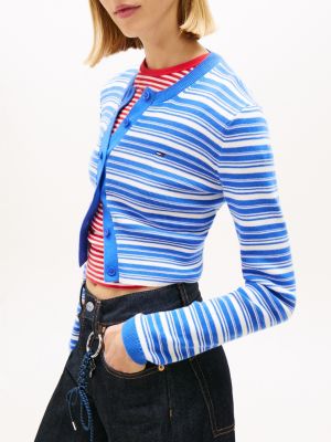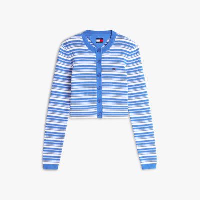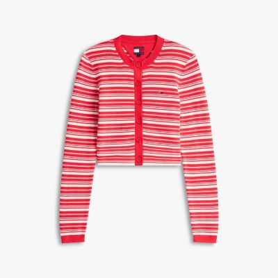 Dieser Slim Fit Cardigan mit Streifen und gerippten Besätzen sorgt für einen schmeichelhaften College-Look.