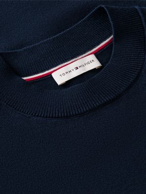 Dieser Kurzarm-Pullover im T-Shirt-Stil punktet mit feinem Strick, Rippstrick-Rundhalsausschnitt und hervorgehobenen Details am Bündchen.