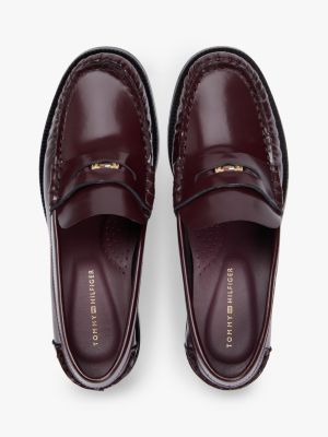 Ein Blockabsatz verleiht diesem klassischen Pennyloafer aus Lackleder mit Branding-Münze einen neuen Look.