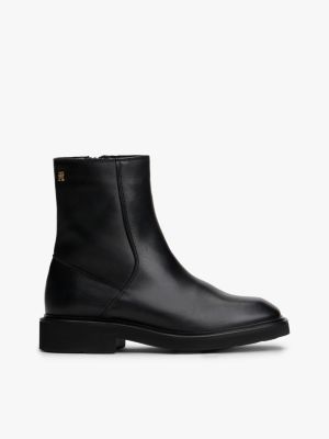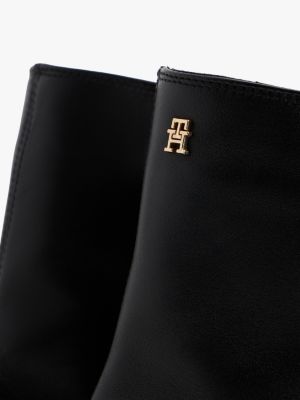 Diese Stiefelette aus Glattleder mit eckiger Zehenpartie und auffälligem Logo-Detail ist ein vielseitig kombinierbares Essential für jeden Anlass.