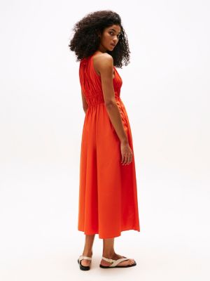 Ob Strandtage oder Nächte in der City: Dieses Maxikleid mit gesmoktem Oberteil und schmeichelndem, tiefem Rundhalssusschnitt sorgt für einen mühelos eleganten Look.
