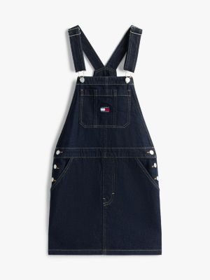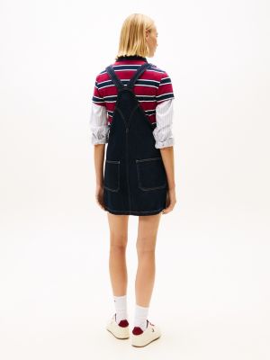 Ein Klassiker für entspannte Wochenenden: Dieses gerade geschnittene Mini-Latzkleid überzeugt mit Rigid Denim.