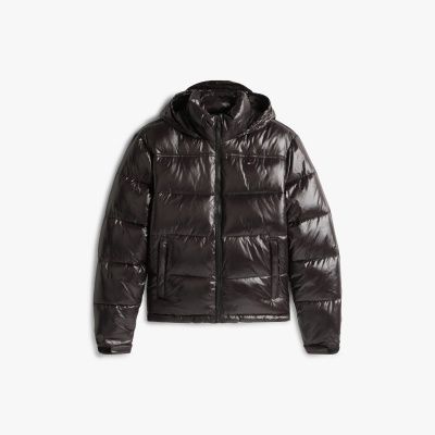 Street-Style gepaart mit Funktionalität: Diese coole Puffer-Jacke aus glänzendem Nylon überzeugt durch ihr verstaubares Design.