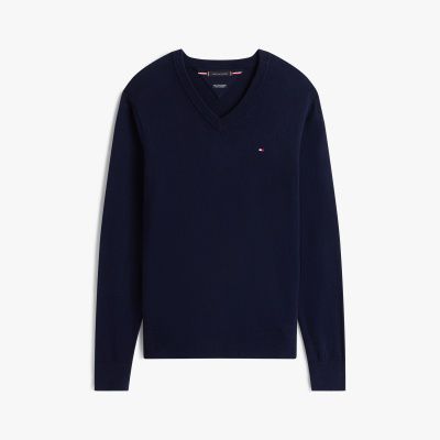Bring einen Hauch Luxus in deine Strickwaren: Dieser Pullover mit V-Ausschnitt besteht aus einem Mix aus Pima-Baumwolle und Kaschmir.