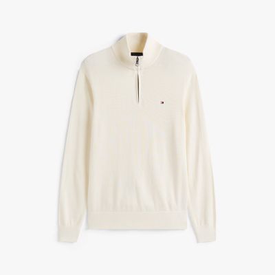 Dieser Pullover aus Pima-Baumwolle mit einem Hauch Kaschmir für extra Wärme hat eine dezente Flag-Stickerei und einen halblangen Reißverschluss.