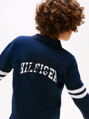 Dieses Langarm-Poloshirt mit Streifen-Details begeistert durch sportliche Vibes, während das Rückenlogo als Stickerei und Print ein cooles Finish kreiert.