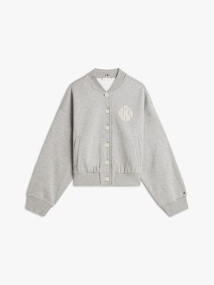Dieser Relaxed Fit Bomber-Cardigan aus Baumwollmix punktet mit einem Flex-Fleece-Gewebe und dem Tommy-Logo im College-Stil.