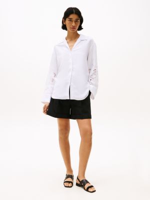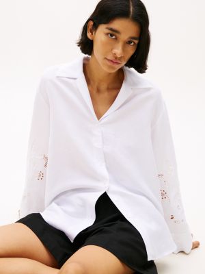 Diese Relaxed Fit Hemdbluse mit bezaubernden Lochstickerei-Details ist ein stilvoller Begleiter für den ganzen Tag – und Abend.