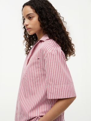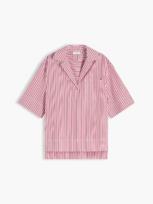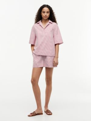 Rocke den Resort-Style in diesem Hemd aus reinem Baumwoll-Popeline mit lässigem kubanischem Kragen, eingefasster Knopfleiste und kurzen Ärmeln.