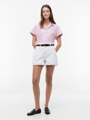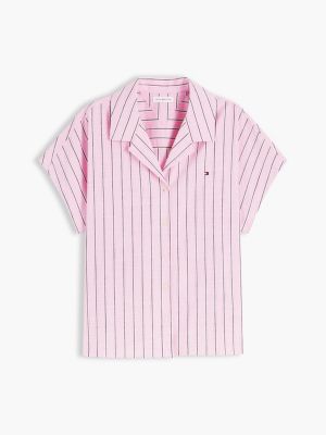 Verströme entspannte Vibes in diesem Kurzarm-Hemd mit lässiger Schulterpartie und kubanischem Kragen.