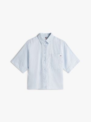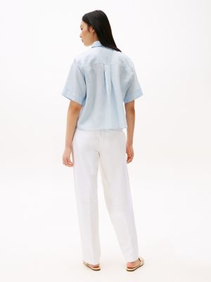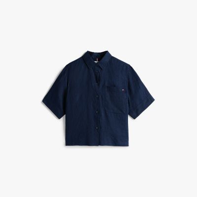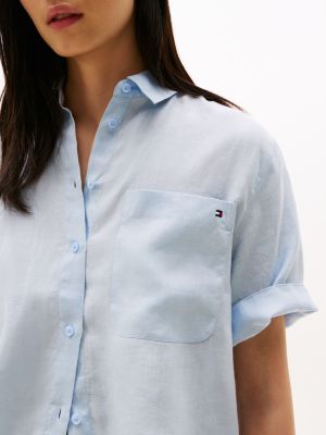 Eine aufgesetzte Oversize-Brusttasche verleiht dieser smarten kurzärmligen Bluse aus Leinen lässige Vibes.