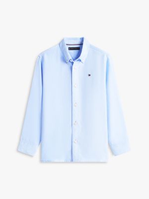 Dieses Hemd aus Leinenmix punktet bei eleganten Anlässen mit schickem Button-down-Kragen und dezenter Flag-Stickerei.