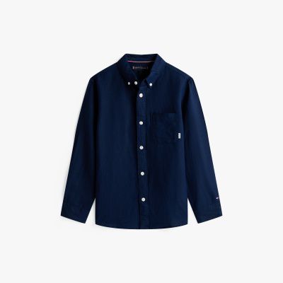 Dieses Hemd aus Leinenmix punktet bei eleganten Anlässen mit schickem Button-down-Kragen und dezenter Flag-Stickerei.