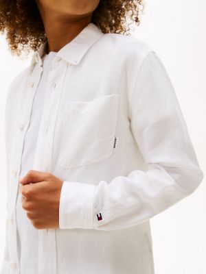Relaxed Fit Leinenmix-Hemd mit Flag-Stickerei