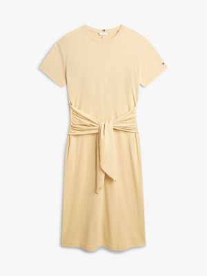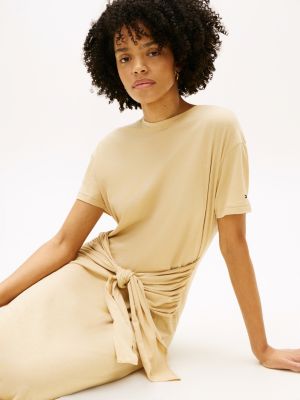 Das gleichfarbige Bindeband zum Knoten betont die Taille und verleiht diesem strukturierten Relaxed Fit T-Shirt-Kleid in Midi-Länge eine schmeichelhafte Silhouette.