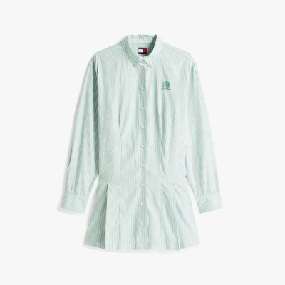 Falten am Saum sorgen bei diesem Relaxed Fit Hemdkleid mit edler Wappen-Stickerei für mehr Bewegungsfreiheit.