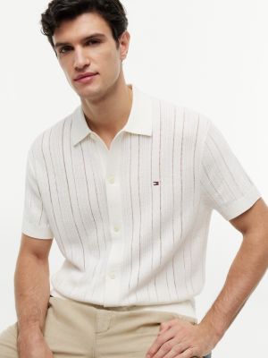 Dieses von Resorts inspirierte Kurzarm-Strickhemd ist perfekt für milde Abende im Urlaub und überzeugt durch ein hochwertiges Material mit Leinenanteil und strukturierten Pointelle-Details.