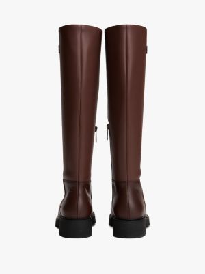 Setze ein Statement in diesem kniehohen Stiefel aus Leder mit klobiger, rutschhemmender Sohle und praktischem Reißverschluss an der Seite.