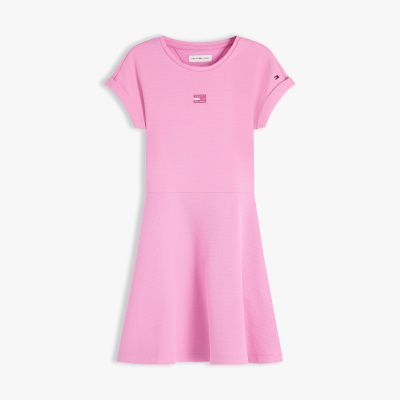 Dieses Kleid aus elastischem Material vereint lässigen Komfort mit einem femininen Akzent – die schwungvolle Skater-Silhouette wird dabei durch das gleichfarbige Flag-Branding abgerundet.