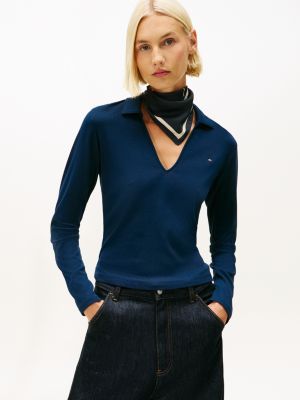 Seidiges Gewebe, eine offene Knopfleiste und Schlitze an den Bündchen verleihen diesem klassischen Langarm-Poloshirt im Slim Fit smarte Vibes.