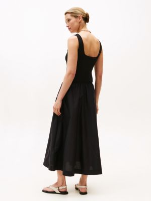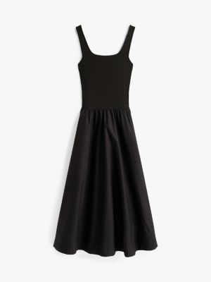 Bring verspielte Vibes in deinen Alltag dank diesem Midikleid mit geripptem Oberteil und glattem Rock in Kontrast-Optik.