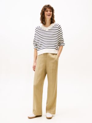 Leinenmix macht diese Tailored Fit Hose mit teilweise elastischem Taillenbund und Tommy Flag aus Metall zur luftigen Wahl für warme Tage.