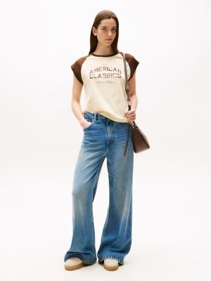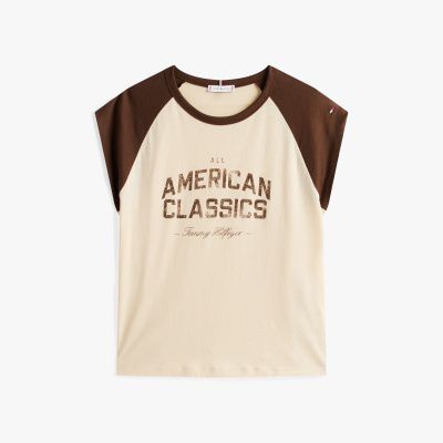 Ein Tommy Hilfiger-Logo im College-Stil macht dieses T-Shirt mit Raglan-Flügelärmeln und Rundhalsausschnitt zum Eyecatcher.