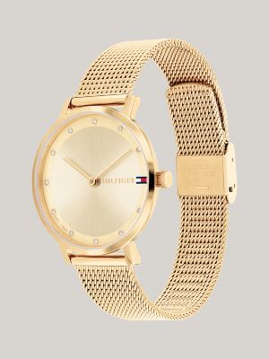 Vergoldete Armbanduhr mit Mesh-Armband